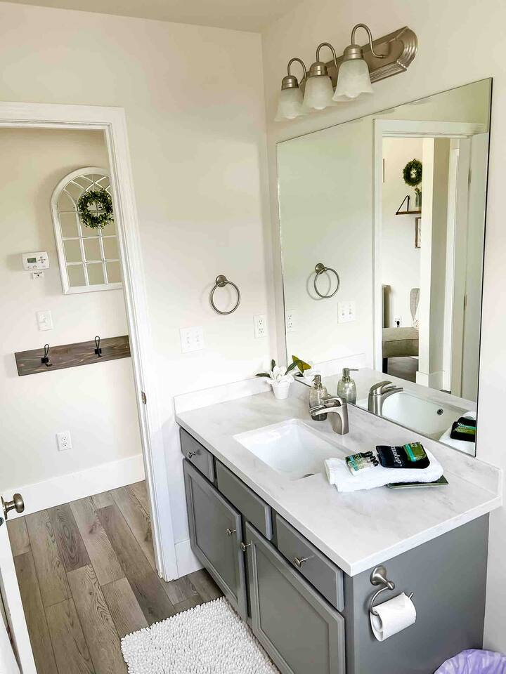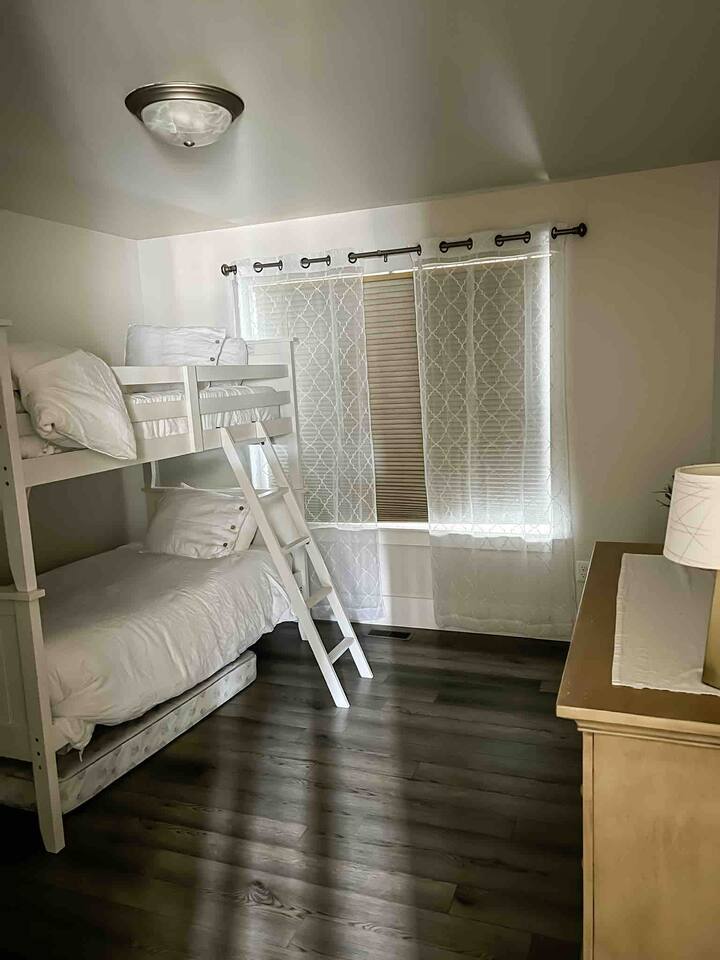 This an entire single family home with an oversized two car garage, patio, fenced yard . Each room has black out blinds, felt hangers, memory foam mattresses and pillows, hypoallergenic linens and duvets. Enjoy a full kitchen/dining/great room/outdoor space with a brand new gas grill! We have sleds for the sledding hill available in the garage. Let the kids enjoy a playground and park space right acrossed the street. This home was just upgraded with newly installed LVP flooring throughout, a Tyvarian stone shower and White Corian stone countertops. The house in stock with basic necessities such as toilet paper, paper towels, laundry soap, coffee and snacks. LAYOUT DESCRIPTION: Bed 1 “The Bridger”: 1 king bed 1 pack n play en-suite bathroom with with toilet and Tyvarian shower with seat separated by door, dual vanity Bed 2 “Yellowstone”: 1 Queen bed with full hall bath including soaker tub/shower combo Bed 3 “Glacier”: twin bunk bed with trundle style toddler bed, full hall bath including soaker tub/shower combo Living room: 2 twin self inflating air mattresses