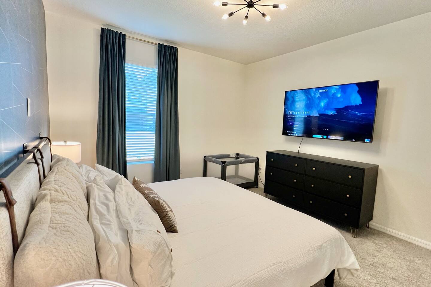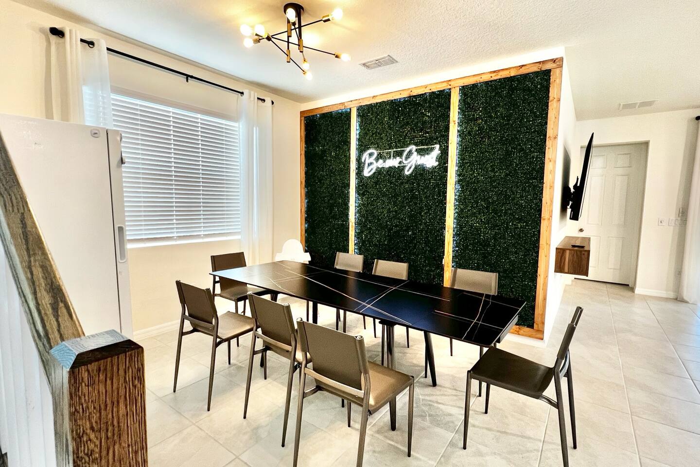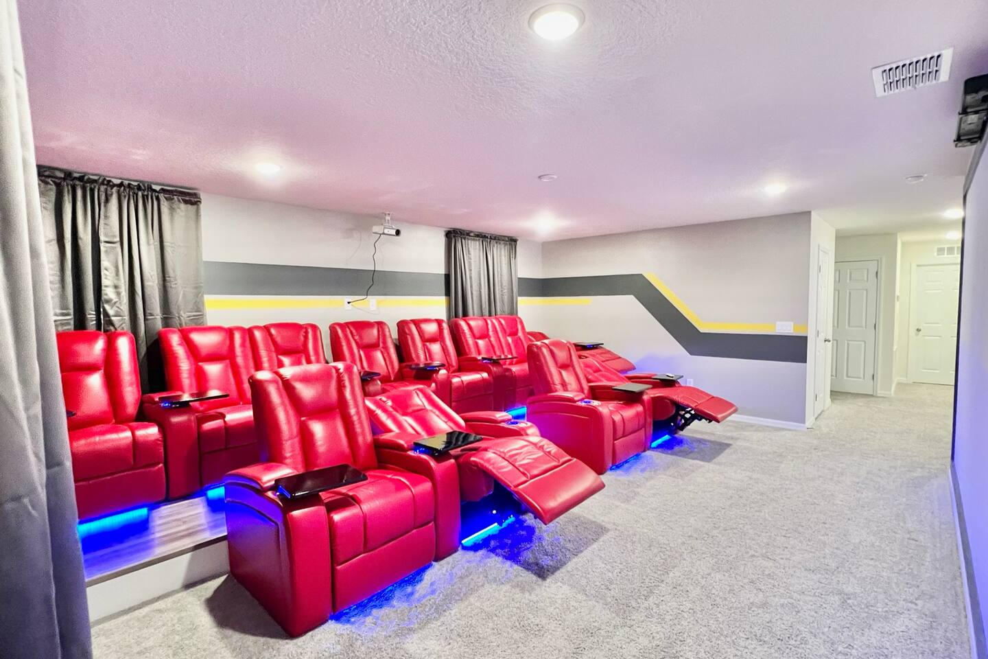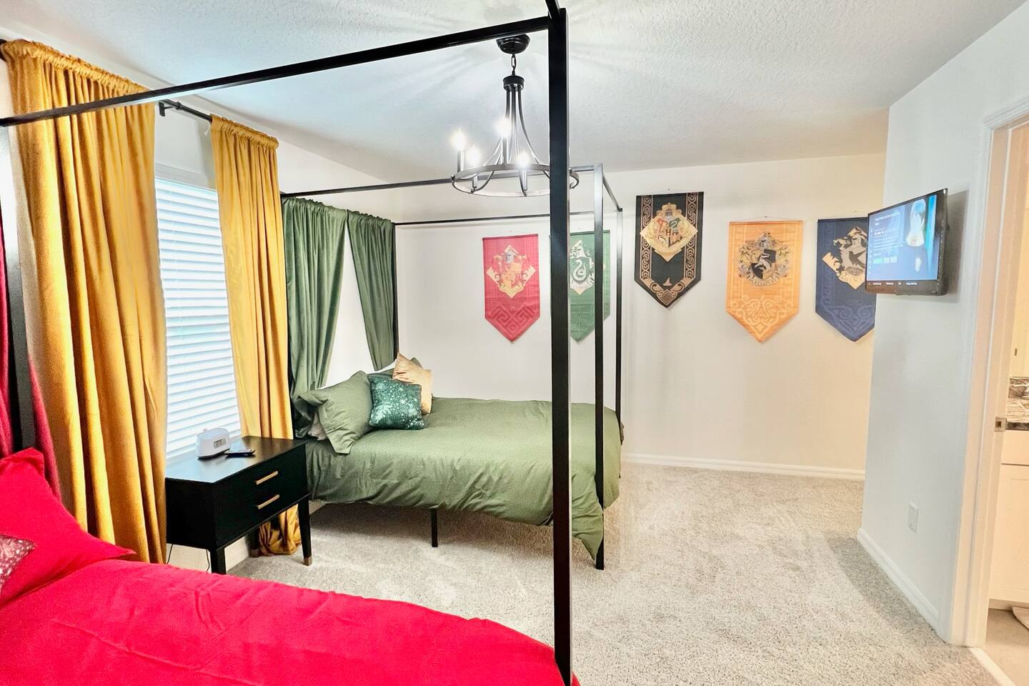 🎉GAME ROOM AND 7TH BEDROOM WERE COMPLETED IN FEBRUARY 2025🎉 Professionally designed, every detail has been carefully selected to ensure a fun and relaxing experience. With our themed bedrooms, step into the world of Harry Potter, Star Wars, Disney Princesses, Mickey Mouse, Avengers and brand new Wicked theme. But it doesn't end there, 4 king size rooms have been designed for the adults too! This spacious house will allow the whole family and friends to enjoy time together and still allow for the privacy and individual space you need. Our 7 bedroom 6.5 bath house accommodates up to 21 people including 2 infants/toddlers and comes with all the supplies you might need. No need to bring your Pack N Play or highchairs, we've got you covered! Pose for your family photos in front of our neon welcome sign and Florida inspired greenery wall! Solara Resort at Westside is a leading resort in the area not just because of its top rate amenities but because of the quality level of service provided by the staff committed to helping you have a great vacation. Stay in and set your own mood on the private covered lanai equipped with pool/hot tub/fire pit/BBQ and dining/lounging or watching movies and playing games in our theatre/game room. Explore the resort restaurants, game rooms, gym, water park, playground, volleyball/basketball courts. Or venture out to one of the world class theme parks, beaches or other attractions. We understand that your vacation is a special time to gather, relax and have fun together. We are committed to first class service, clear and helpful communications and transparency. Reach out anytime for a response within minutes. LAYOUT DESCRIPTION: Down stairs Bedroom 1(Green Room): 1 king bed 1 pack n play, en-suite bathroom with shower, private toilet and dual vanity, 3 people including 1 toddler/infant Bedroom 2(Blue Room): 1 king bed 1 pack n play, full hall bath with shower 3 people including 1 toddler/infant Upstairs Bedroom 3(Star Wars Room Docking Bay 94 on Tatooine): 1 king bed en-suite full bathroom with shower tub combo 2 people Bedroom 4(Harry Potter Gryffindor and Slytherin Dormitory): 2 full beds jack n Jill bathroom with private toilet shower tub combo and dual vanity 2 people Bedroom 5(Disney Princess Room ): 2 twin beds jack n Jill bathroom with private toilet shower tub combo and dual vanity 2 kids Bedroom 6(Avengers Compound/Mickey Mouse Clubhouse Room): 9 twin beds (3 triple bunk beds) en-suite full bathroom with dual vanity and shower 9 kids Bedroom 7 (Wicked’s Glinda and Elphaba’s dormitory): 1 king bed full hall bathroom with tub/shower combo 2 people Theater room is upstairs Game room has a foosball table, pool table, gaming desk, projector/sound bar and lights and decor. Located in the garage