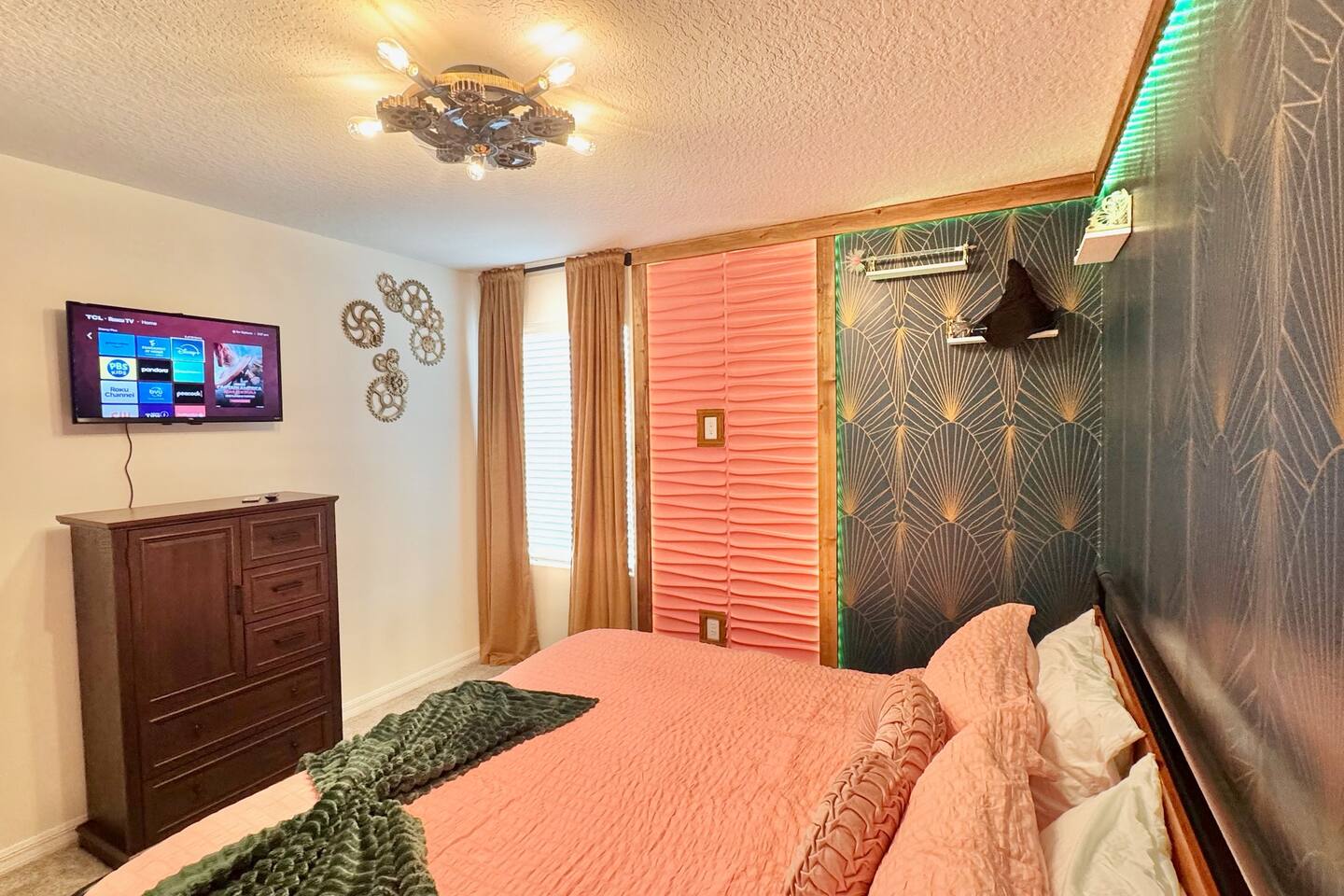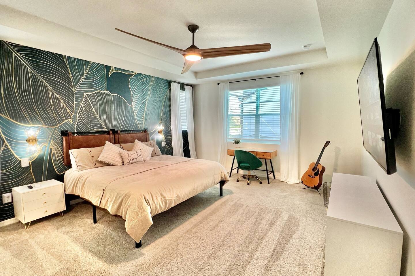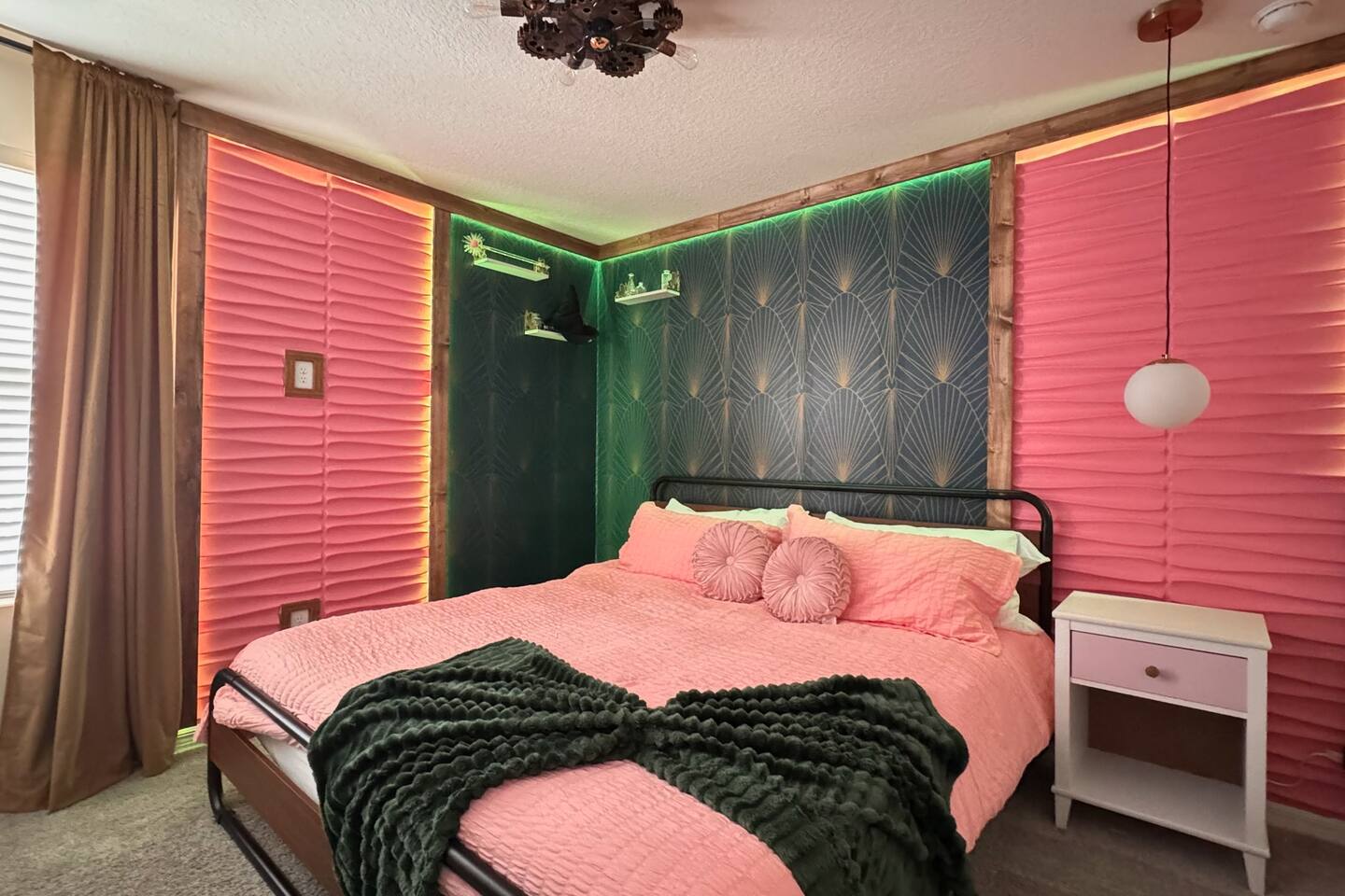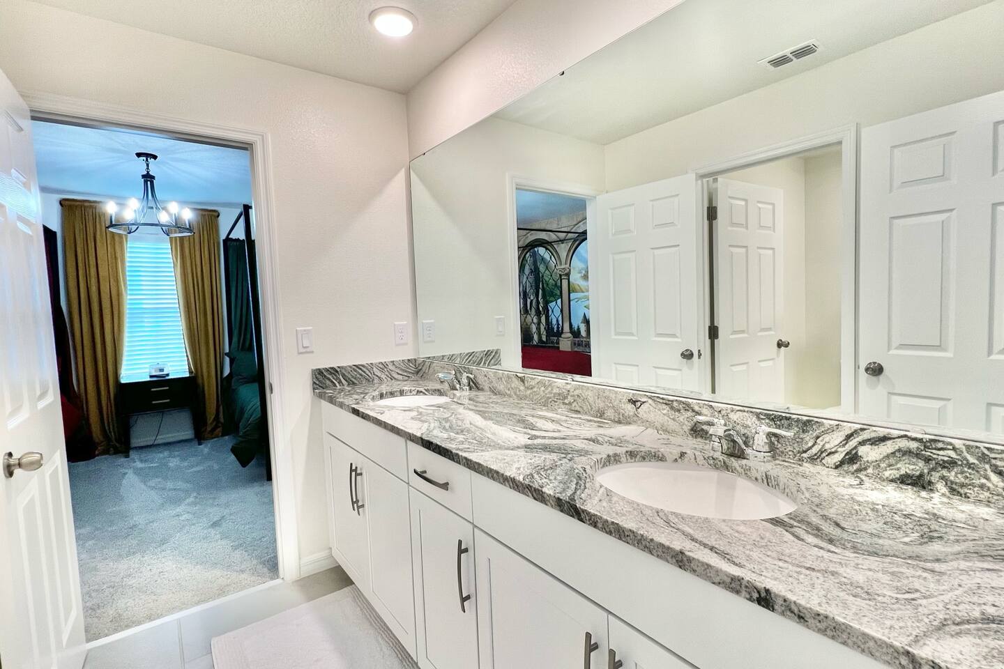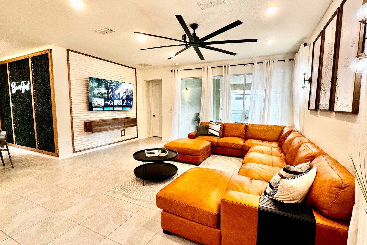 🎉GAME ROOM AND 7TH BEDROOM WERE COMPLETED IN FEBRUARY 2025🎉 Professionally designed, every detail has been carefully selected to ensure a fun and relaxing experience. With our themed bedrooms, step into the world of Harry Potter, Star Wars, Disney Princesses, Mickey Mouse, Avengers and brand new Wicked theme. But it doesn't end there, 4 king size rooms have been designed for the adults too! This spacious house will allow the whole family and friends to enjoy time together and still allow for the privacy and individual space you need. Our 7 bedroom 6.5 bath house accommodates up to 21 people including 2 infants/toddlers and comes with all the supplies you might need. No need to bring your Pack N Play or highchairs, we've got you covered! Pose for your family photos in front of our neon welcome sign and Florida inspired greenery wall! Solara Resort at Westside is a leading resort in the area not just because of its top rate amenities but because of the quality level of service provided by the staff committed to helping you have a great vacation. Stay in and set your own mood on the private covered lanai equipped with pool/hot tub/fire pit/BBQ and dining/lounging or watching movies and playing games in our theatre/game room. Explore the resort restaurants, game rooms, gym, water park, playground, volleyball/basketball courts. Or venture out to one of the world class theme parks, beaches or other attractions. We understand that your vacation is a special time to gather, relax and have fun together. We are committed to first class service, clear and helpful communications and transparency. Reach out anytime for a response within minutes. LAYOUT DESCRIPTION: Down stairs Bedroom 1(Green Room): 1 king bed 1 pack n play, en-suite bathroom with shower, private toilet and dual vanity, 3 people including 1 toddler/infant Bedroom 2(Blue Room): 1 king bed 1 pack n play, full hall bath with shower 3 people including 1 toddler/infant Upstairs Bedroom 3(Star Wars Room Docking Bay 94 on Tatooine): 1 king bed en-suite full bathroom with shower tub combo 2 people Bedroom 4(Harry Potter Gryffindor and Slytherin Dormitory): 2 full beds jack n Jill bathroom with private toilet shower tub combo and dual vanity 2 people Bedroom 5(Disney Princess Room ): 2 twin beds jack n Jill bathroom with private toilet shower tub combo and dual vanity 2 kids Bedroom 6(Avengers Compound/Mickey Mouse Clubhouse Room): 9 twin beds (3 triple bunk beds) en-suite full bathroom with dual vanity and shower 9 kids Bedroom 7 (Wicked’s Glinda and Elphaba’s dormitory): 1 king bed full hall bathroom with tub/shower combo 2 people Theater room is upstairs Game room has a foosball table, pool table, gaming desk, projector/sound bar and lights and decor. Located in the garage