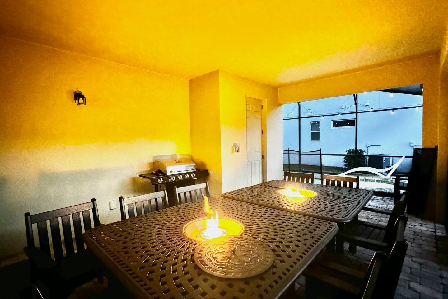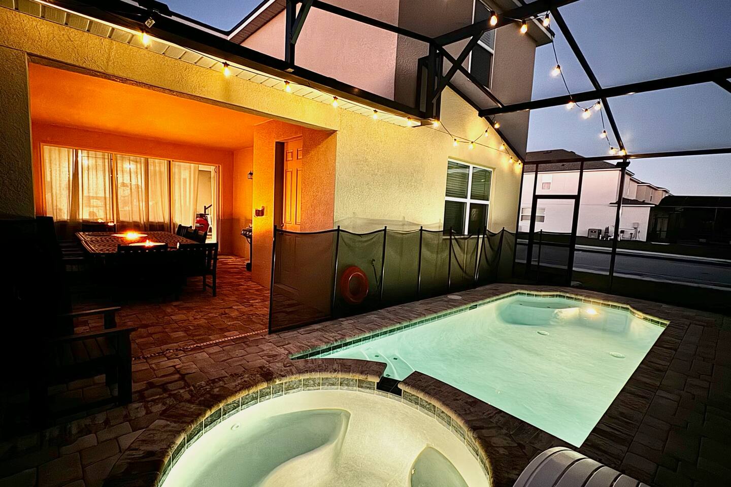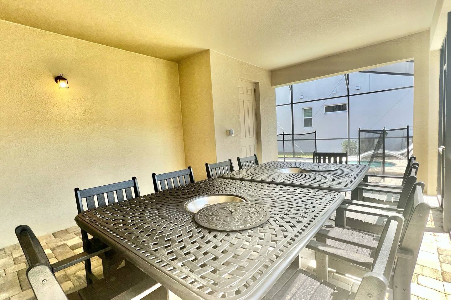 4 miles from Disney! Short drives to all entertainment options. New and professionally designed for your fun and relaxing vacation. 3 themed kids rooms and 3 more king size rooms with ensuites! Loaded with a large heatable pool and spa, covered lanai with outdoor dining space and fire pits, large theater, and a workspace. Stocked with all necessities from a Keurig, K cups, Ninja blender, to paper and bathroom supplies. Enjoy Solara Resort! Surf the Flow Rider and other resort amenities!